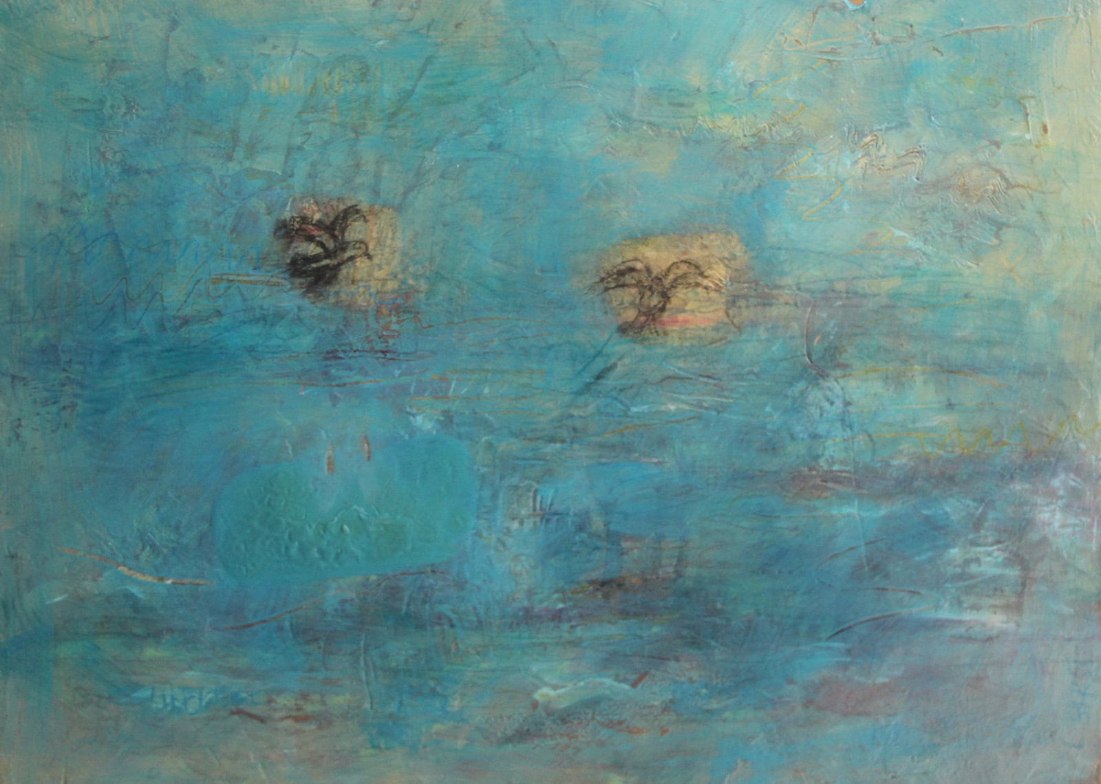 Laima Bikše ar krāsu uz audekla — retāk uz koka virsmas — veido savas iekšējās pasaules stāstījumu.